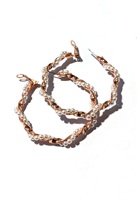 Rose Gold Pearl Hoop Earrings