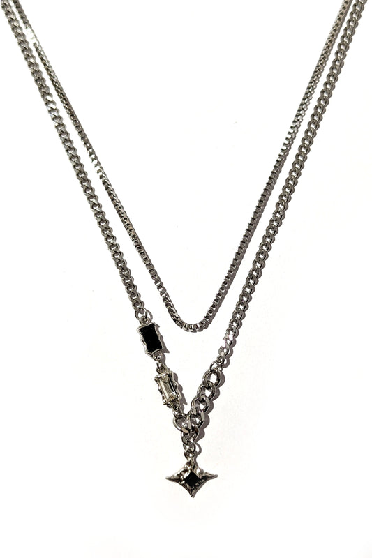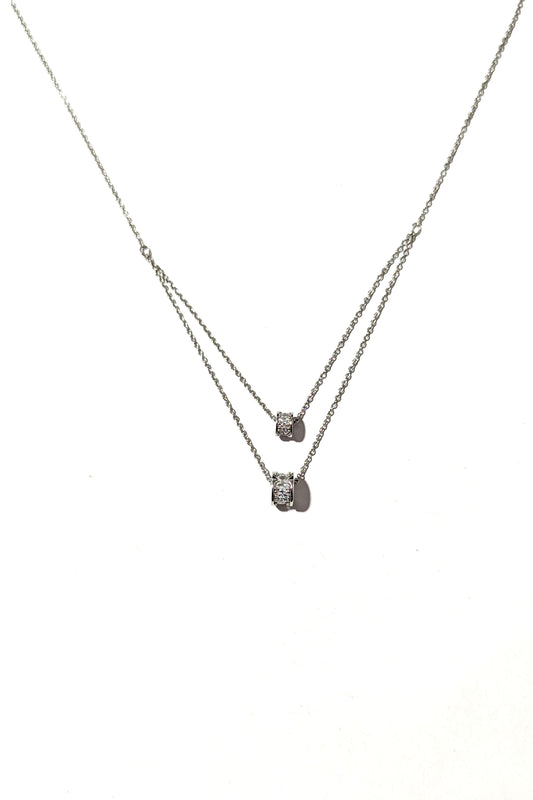 Silver Double Chain Diamond Necklace
